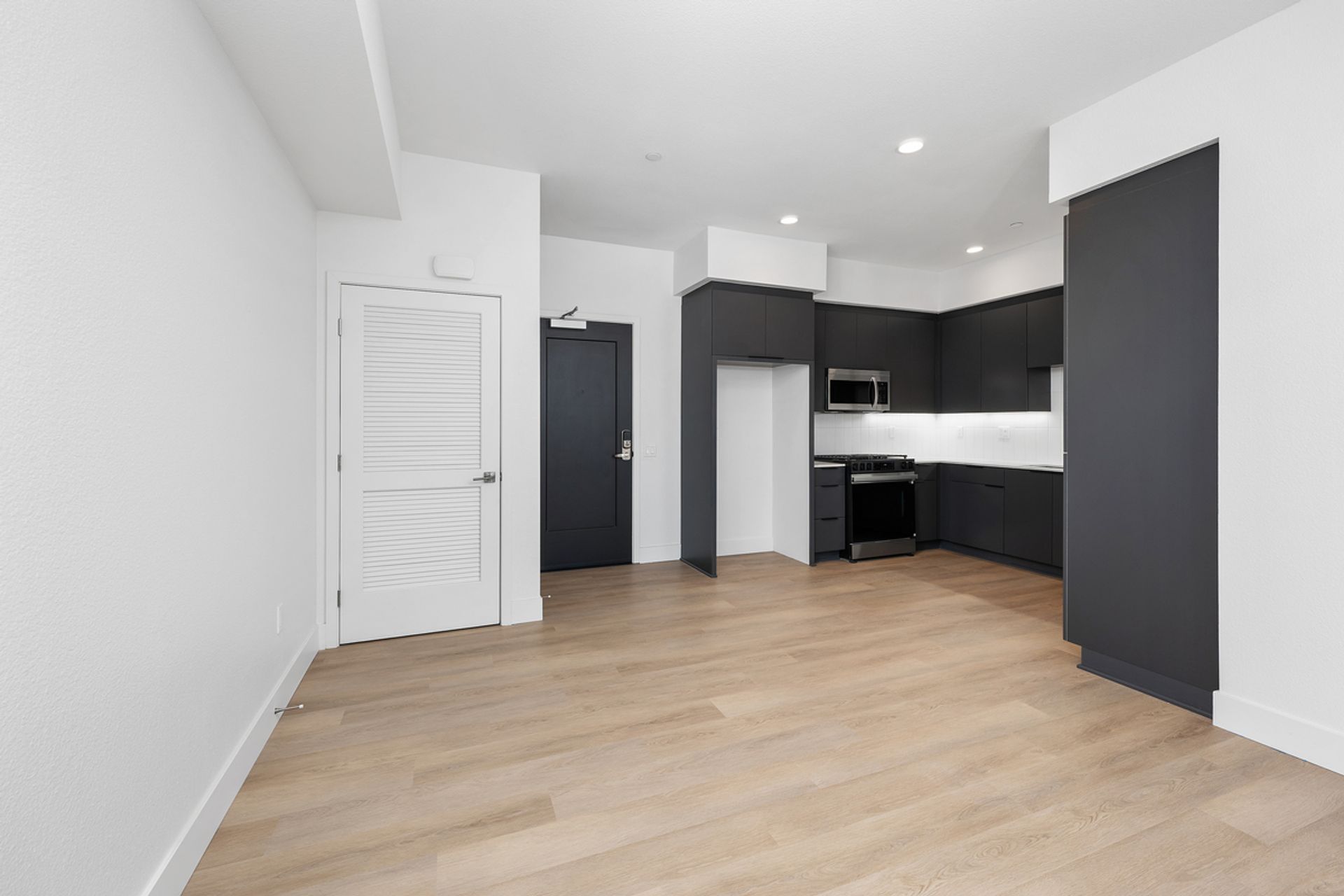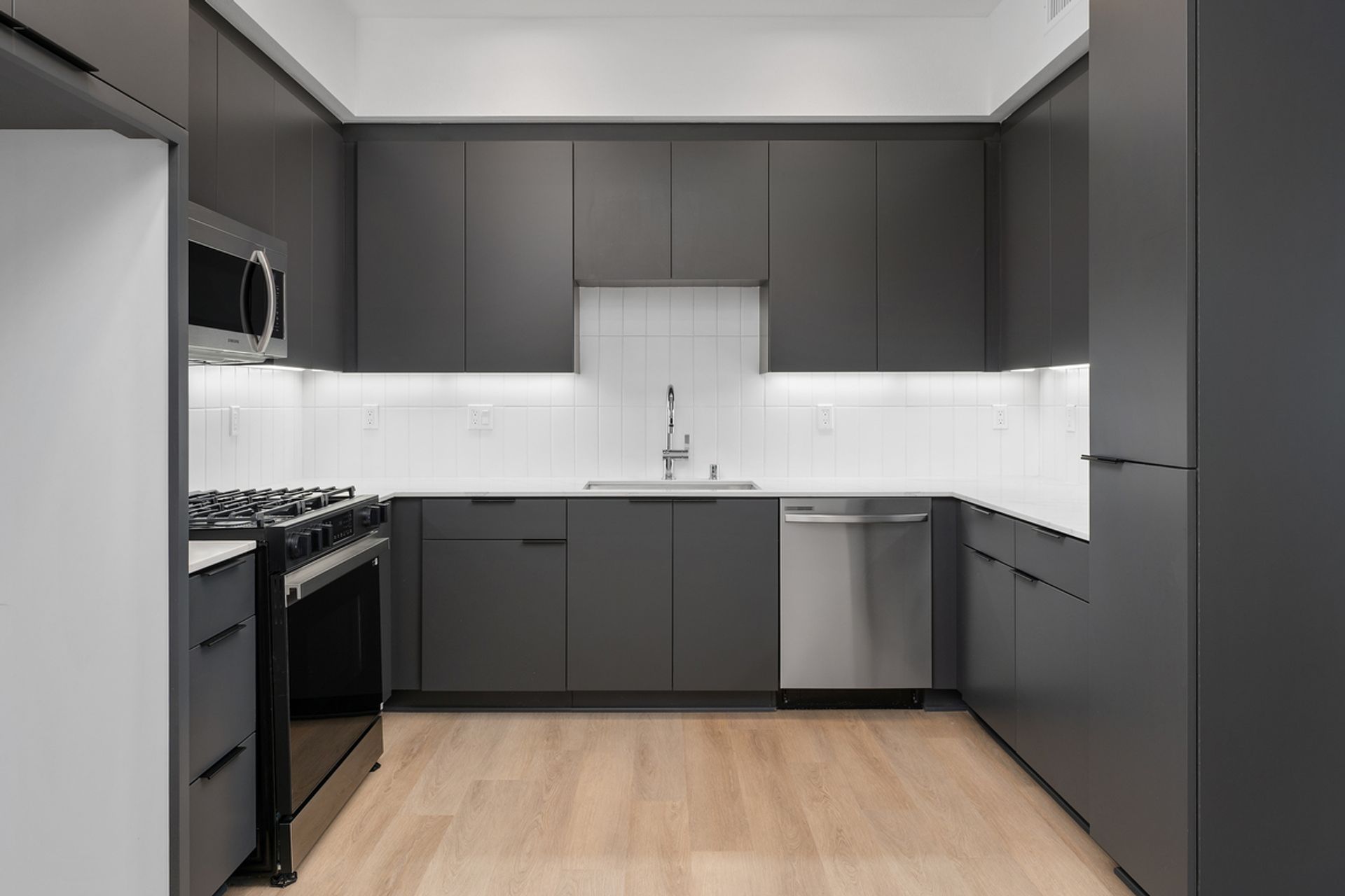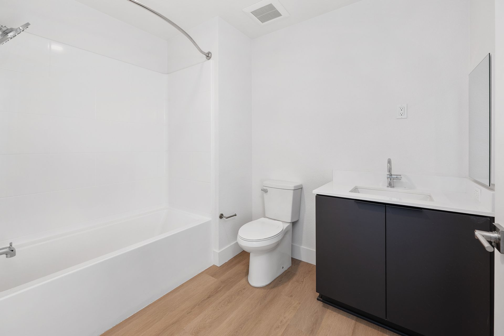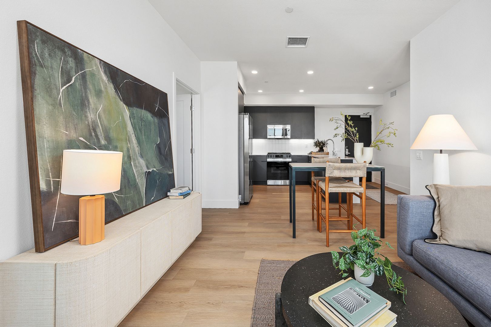 Experience comfort and style in this beautifully designed 2-bedroom, 2-bath apartment. Featuring an open-concept layout, modern kitchen with a large island and stainless steel appliances, and a bright, inviting living area that opens to a private balcony. The bedrooms are thoughtfully separated for privacy, each with its own bathroom, while the in-unit washer and dryer add ultimate convenience. Enjoy sleek wood-style flooring throughout and a warm, contemporary design that makes you feel right at home.
