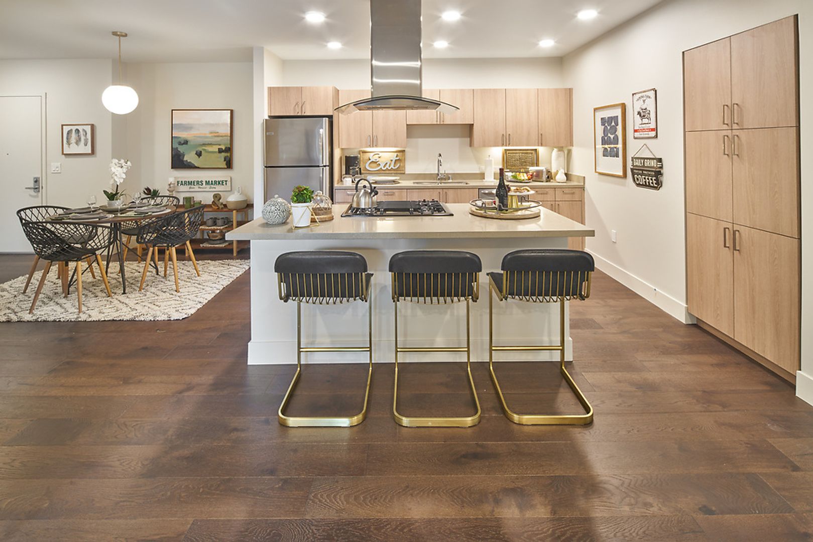 Our designer inspired 3-bedroom 2 bath apartment home features a master suite and two guest rooms. It offers in home laundry, large open chef’s kitchen with island perfect for connecting. You will enjoy the convenience of walk-in closets, large bath areas and a free flow living area sure to please. The double long balcony/patio offers storage as well.